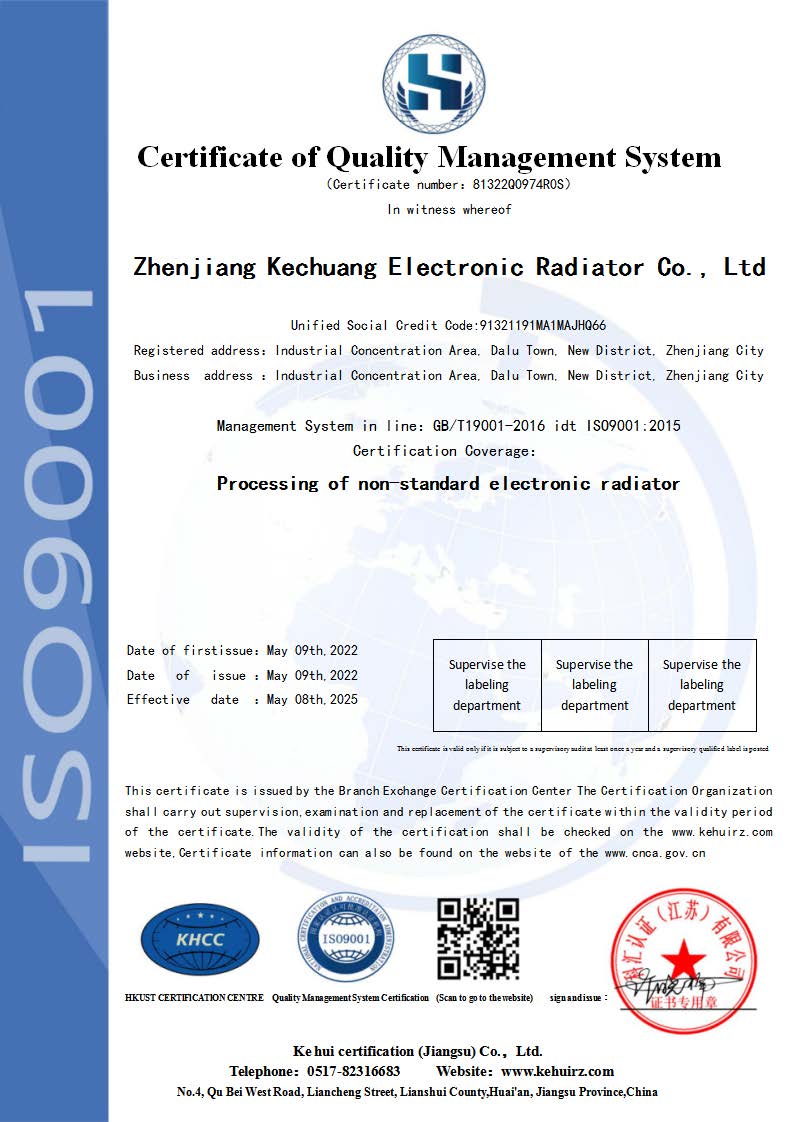 經過2年的努力,公司建立和實施了ISO9001質量管理體系,順利通過了中國質量認證中心關于ISO9001質量管理體系的認證和審核,于2022年05月09日獲得了ISO9001質量管理體系認證證書。